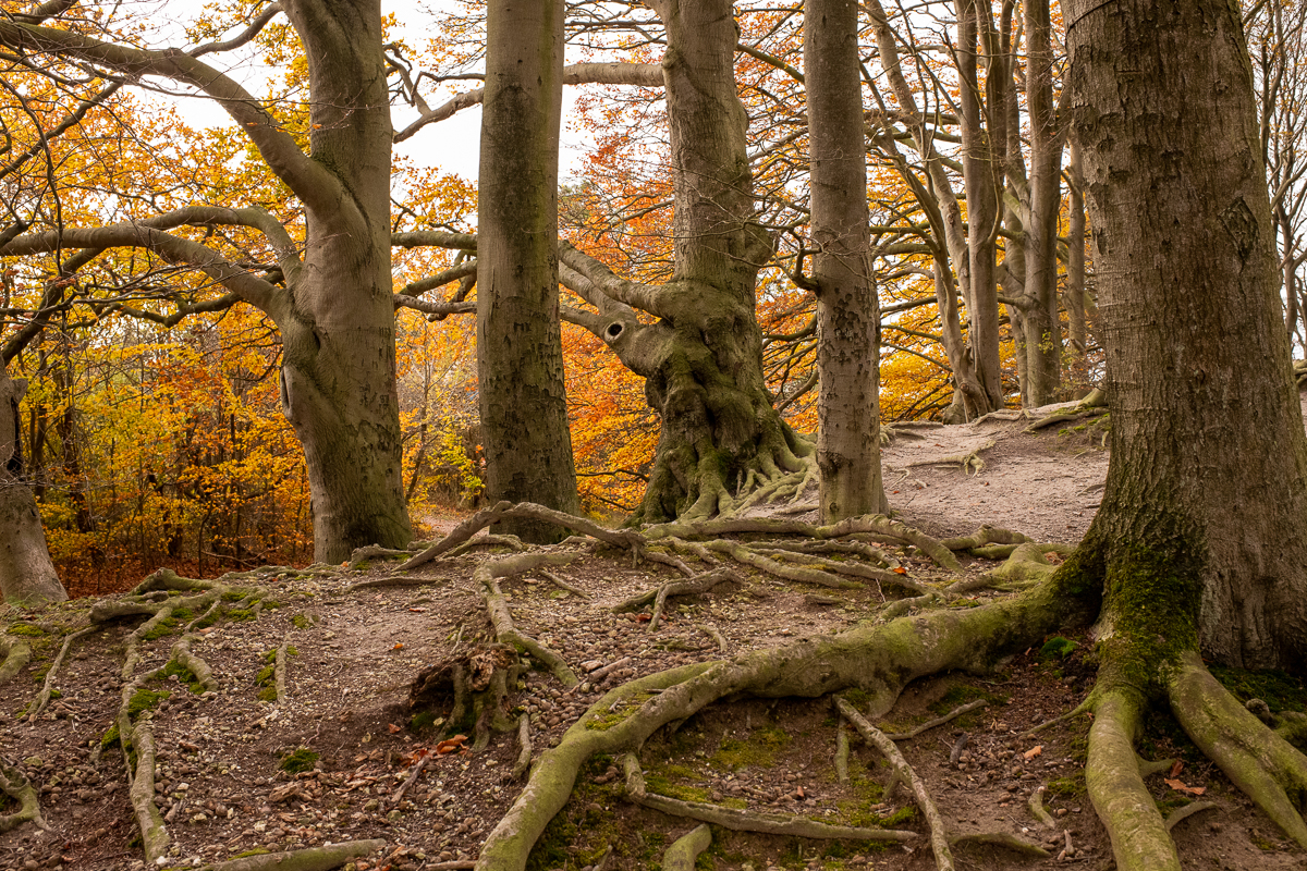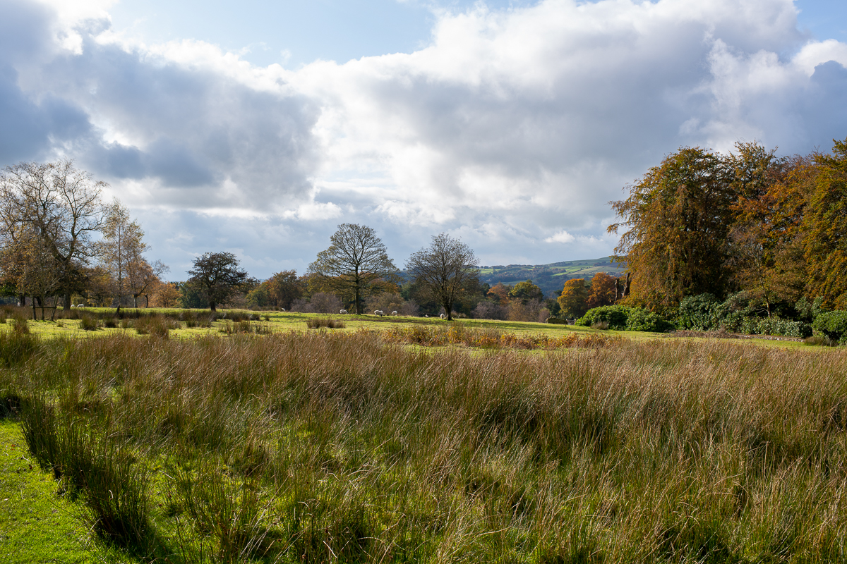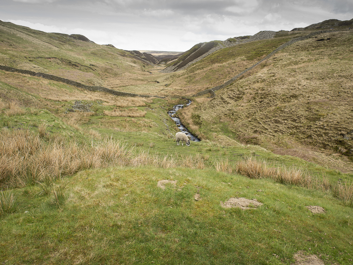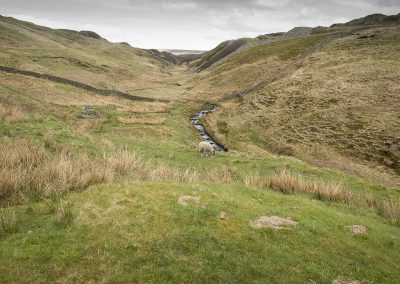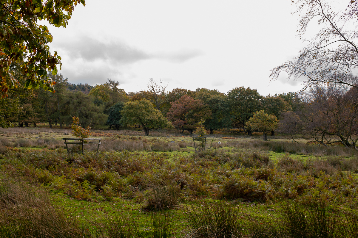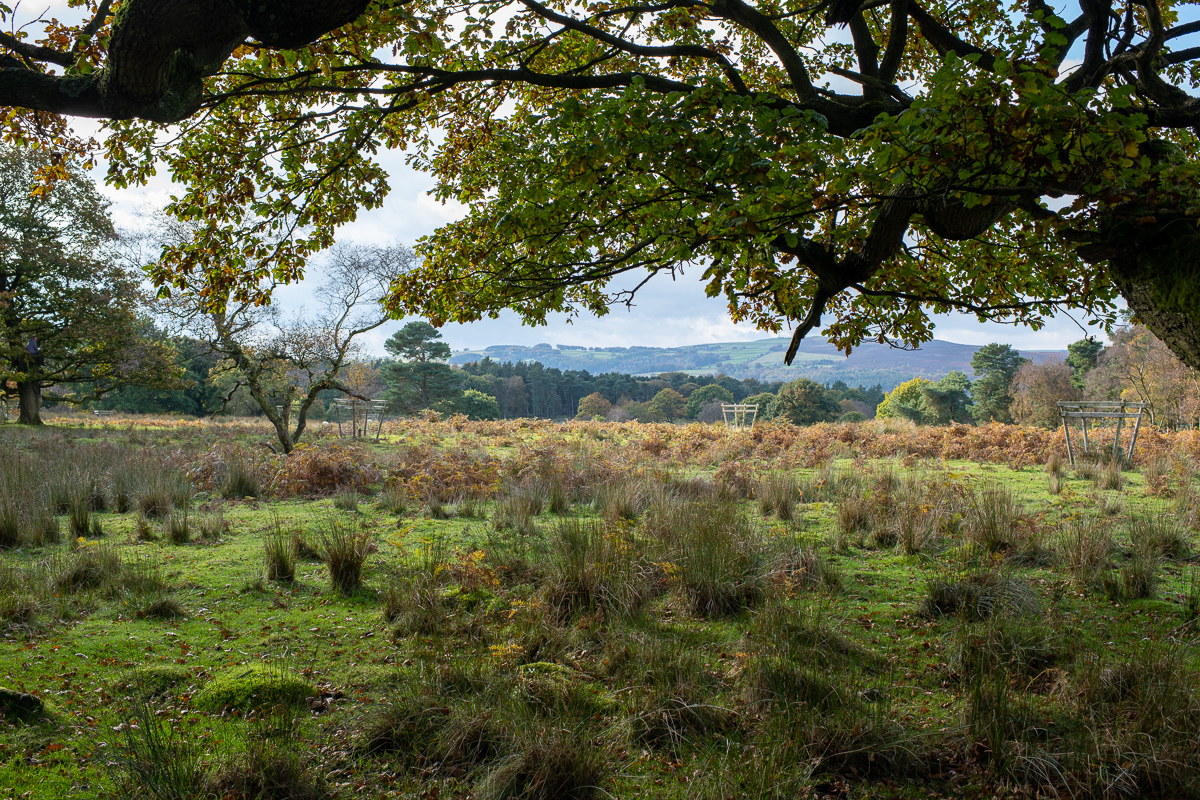 Grazing sheep hidden within the Longshaw Estate, Peak District